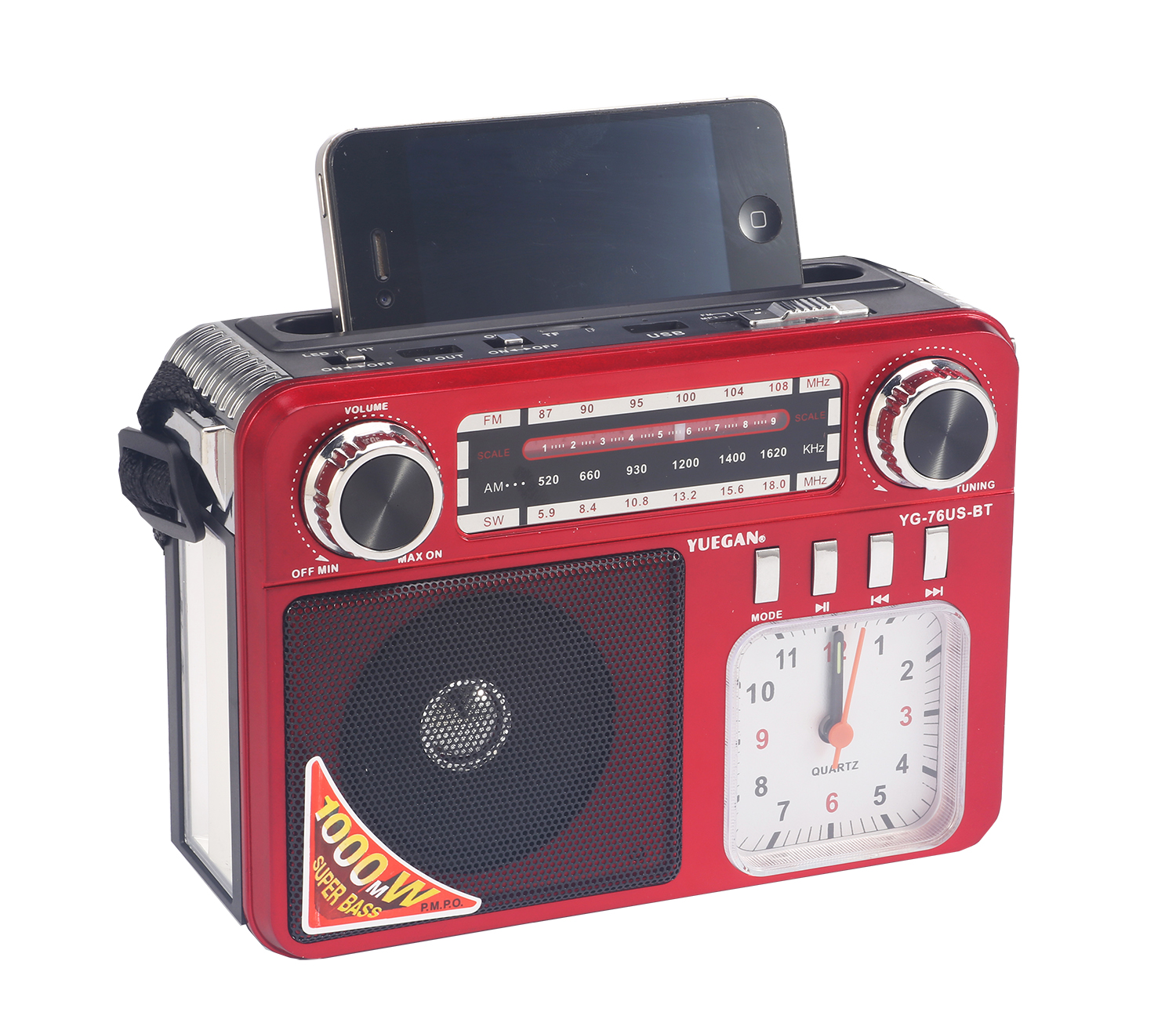 • 产品描述:FM/AM/SW 3BAND USB/TF MP3PLAYER DC:5V With a lithium battery(18650) There’s a flashlight and LED lights Solar panels With Bluetooth You can charge your phone W